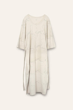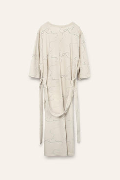This women's Organic Pima cotton dress will make you feel both comfortable and sophisticated. Crafted from high-quality organic Pima cotton, this dress is soft to the touch and gentle on the skin. It features an elegant tasteful breeze print. The dress has a rounded neckline, short sleeves and a belt at waist that can be relaxed tied at back for a flowy silhouette or firmer around the waist. Whether you're heading to the beach, lounging in your home or garden, or running errands in the city, this dress is sure to become your go-to stylish lounge dress. Matching dress is available in kids sizes.