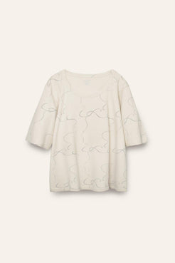 Stay comfortable and look stylish in this organic Pima cotton women's lounge tee with subtile breeze print. Soft and ...
