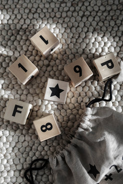 Whether you call it math or maths, mathematics is fun! What better way to help kids discover their hidden talents with numbers than with the help of simple minimalistic wooden blocks printed with numbers, basic math symbols and a few emojis to help them express their joy (and even frustration!). The Math Blocks can also be used as a simple calendar system for your shelf or combine them with our Alphabet Blocks to make plenty of new messages. #wow:). Just like our Alphabet Blocks, Math Blocks come 10 to a set in their own sack. Symbols include:- the numbers 0–9 each repeated four times- basic math symbols: +, -, x, ÷, =, %- punctuation symbols: @, #, &, !, ?- 4 emojis plus a rainbow, a sun, a moon, a star and a heart. Blocks: 5,5 cm x 5,5 cm x 5,5 cm (each) Sack: 32 cm x 32 cm