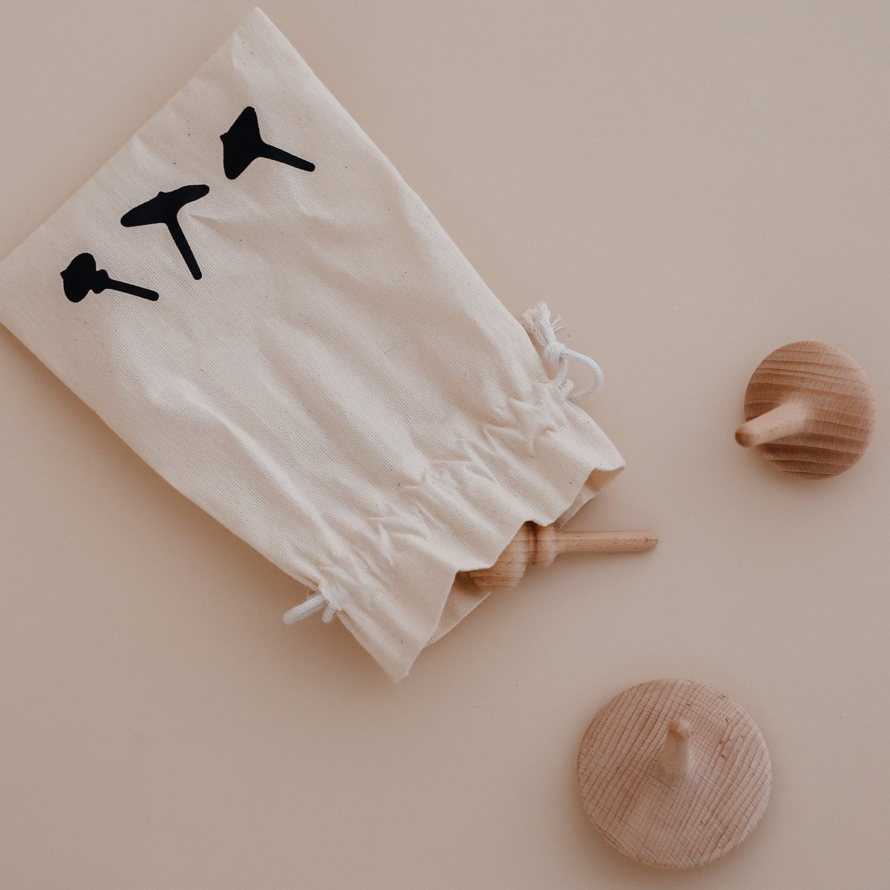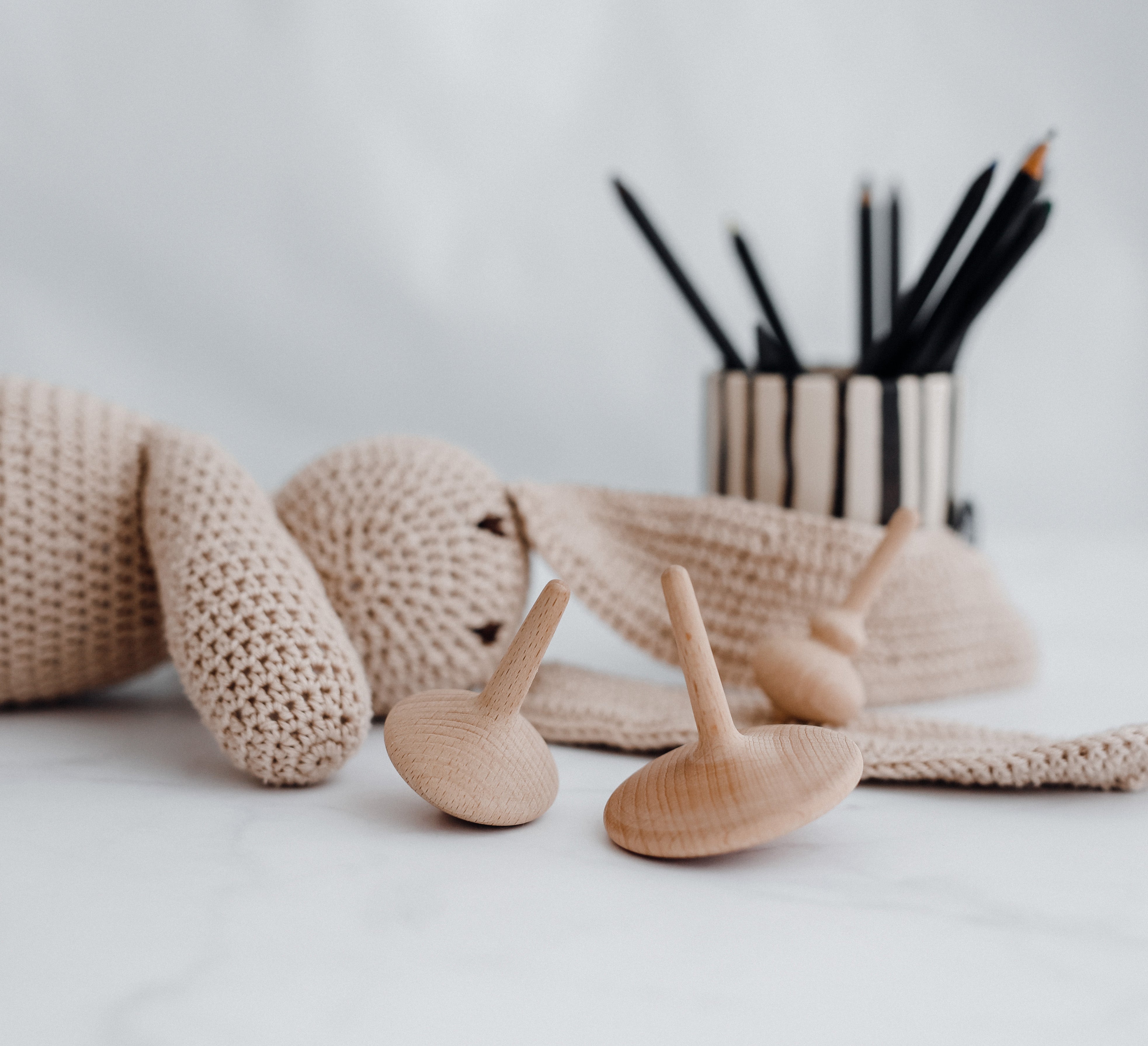 Wooden Spinning Top Three Little Woodies is a simple wooden toy just asking to be spun. Suited for both children and children at heart. The simple wooden spinning top has been around since ancient times. There is something captivating about the way it works. When you spin it, you are overcome by a sense of calmness and serenity. Our minimalistic spinning tops come in sets of three. They are made from untreated beech wood making them safe and allowing the natural beauty of the wood grain to show through.Their organic shape and smooth curves feel soothing to the touch and they are excellent for honing children’s fine motor skills. 7 cm x 3 cm, 7 cm x 4,5 cm and 7 cm x 6 cm