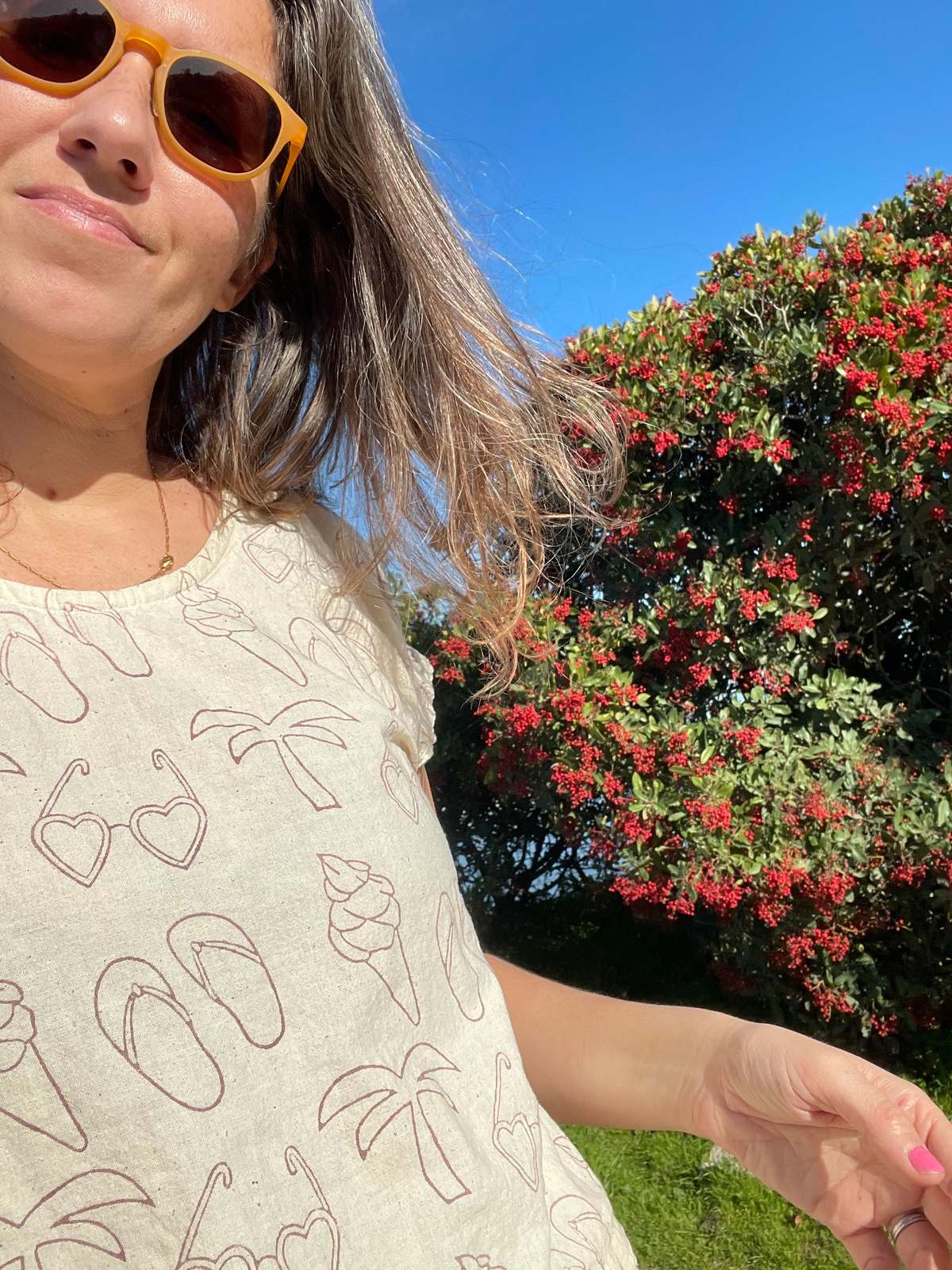 Zelia Top from size XS to XXL. Print available in lavender and brown 100% natural hand-woven cotton. Woven by our artisans in our cooperative in India. Hand-block printed.